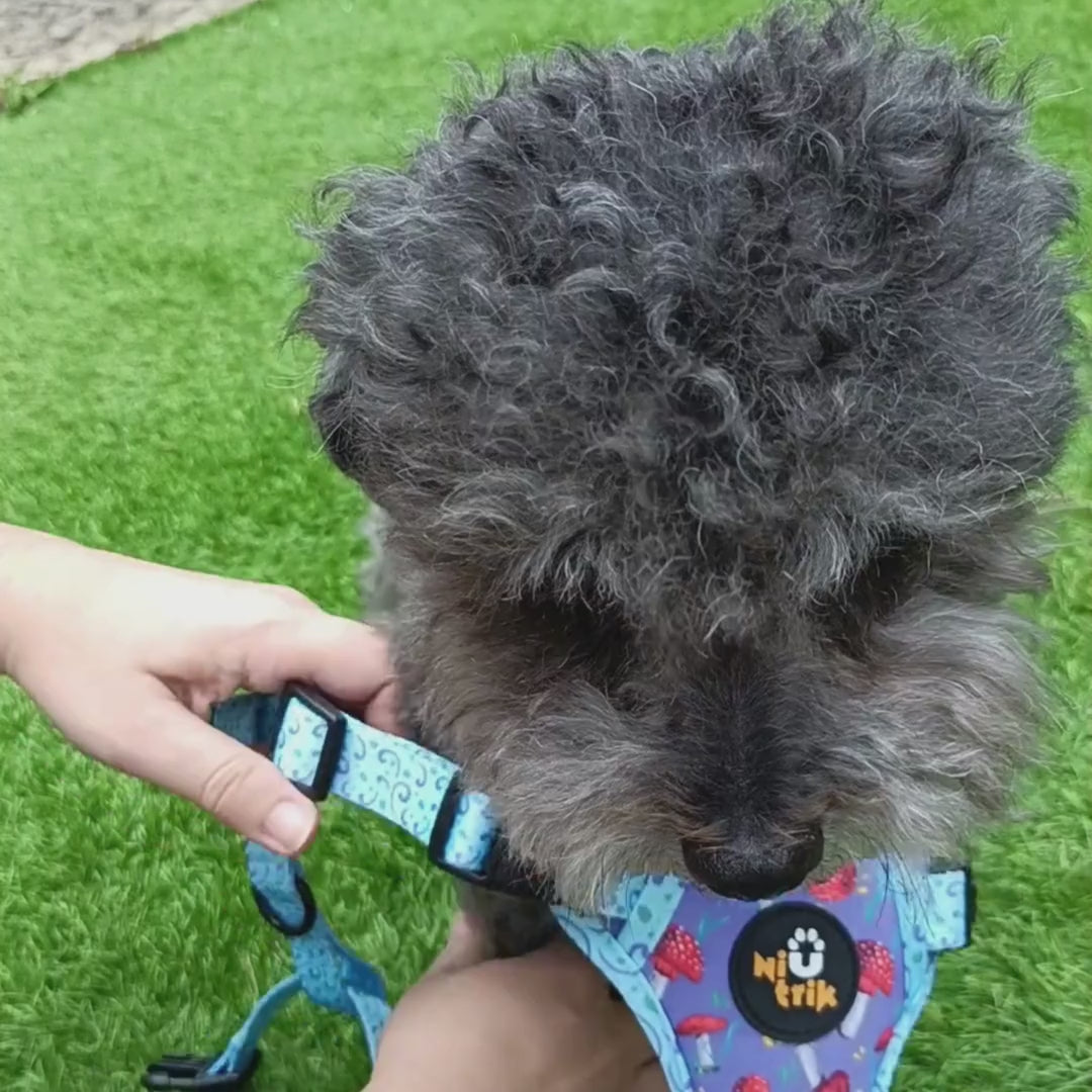 O Peitoral Reversível O Explorador é onde o design pensado encontra a aventura do dia a dia. Concebido para o explorador curioso, este peitoral oferece dois visuais completos num só: o encantador padrão de cogumelos de um lado e um padrão subtil a condizer do outro. Basta virar para combinar com o humor do dia ou com a aventura da semana.